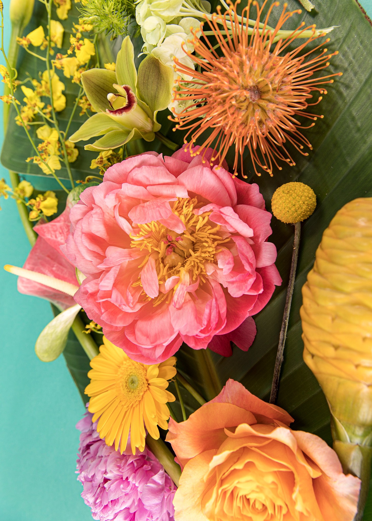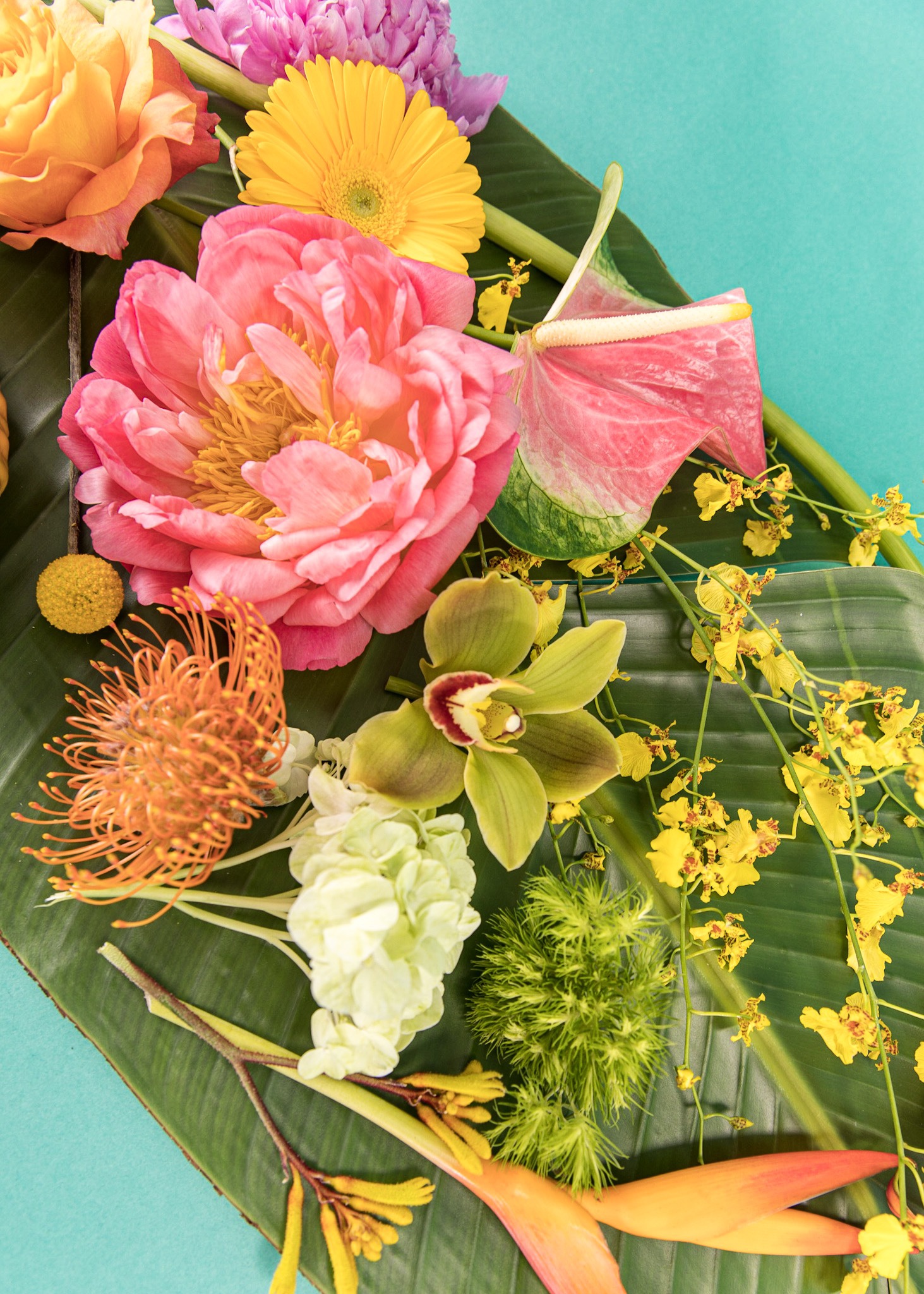 We are working with some amazing blooms. Hydrangeas, peonies, ranunculus, tulips, hyacinth, roses, and more. Offering lush garden arrangements, as well as plenty of our structural tropical arrangements.